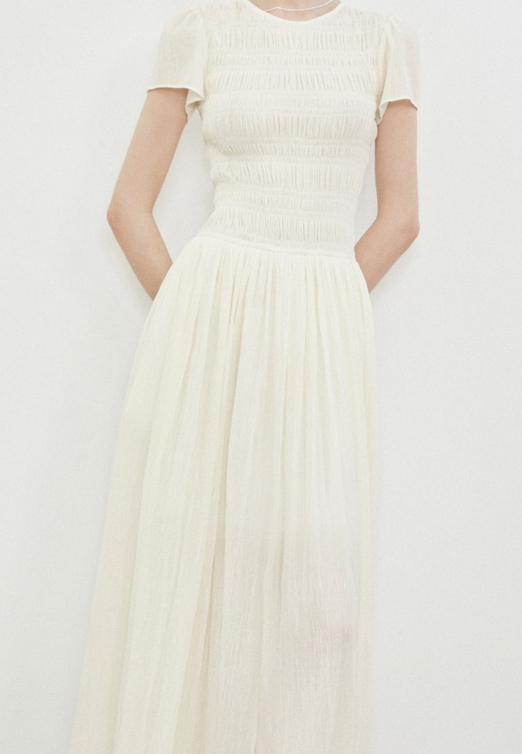 Irregularly twisted Tencel cotton lightweight breathable slimming heavy-duty pleated puff sleeve umbrella dress
