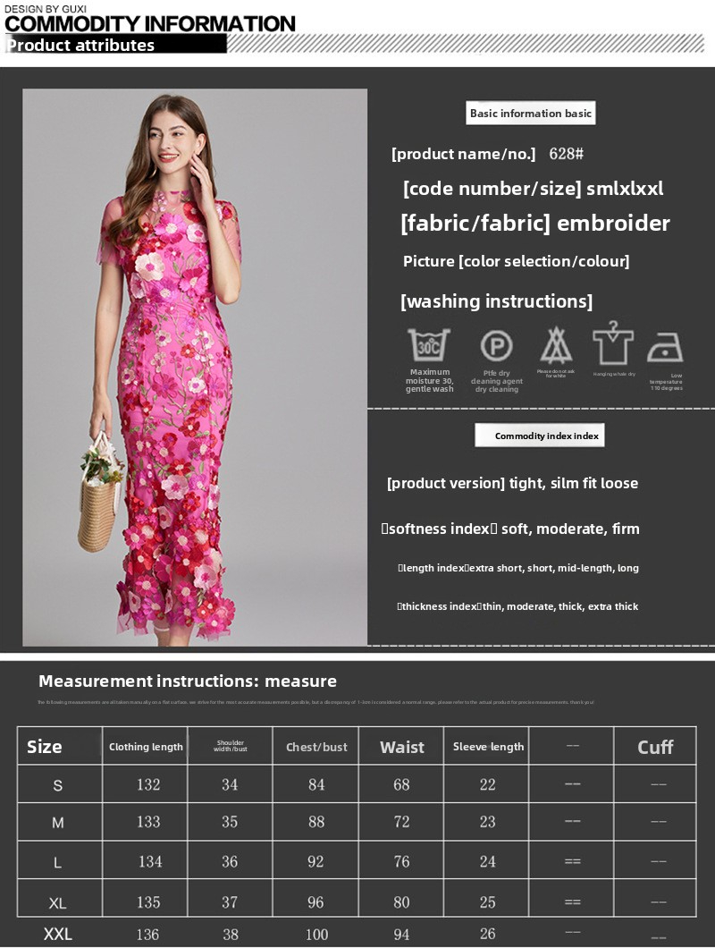 New S/S Elegant court-style floral mesh embroidery bodycon Party dress K26011206