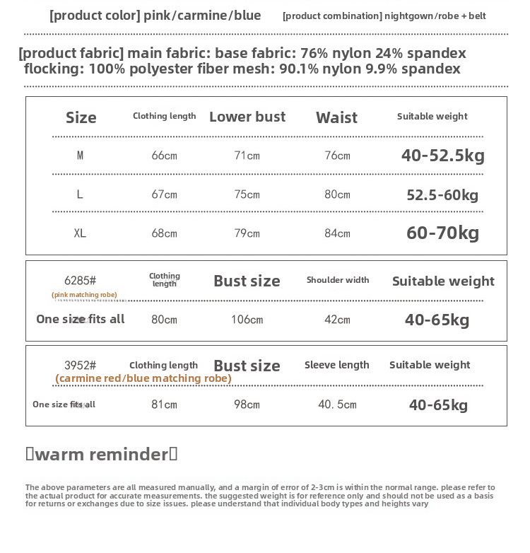 New Sweet and alluring slip dress /robe set Pajama K121604